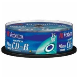 Verbatim CDR90 40x Spindle 25, No 43586 The 'mechanical specifications' of Verbatim media are very precise, and data written to it can be read in a wide range of drives. As a result, Verbatim DatalifePlus discs demonstrate a high level of compatibility between drives running at a wide range of speeds. Features Superior resistance to UV irradiation. 100 years archival life. Lowest error rate against a range of CD writers. Lifetime Warranty. Capacity: 800MB Speed: 40x Pack Style: 25 pack spindle Disc Surface: Extra Protection High Capacity CD-R is compatible with most CD / DVD writers. Recorder software settings may need to be adjusted.